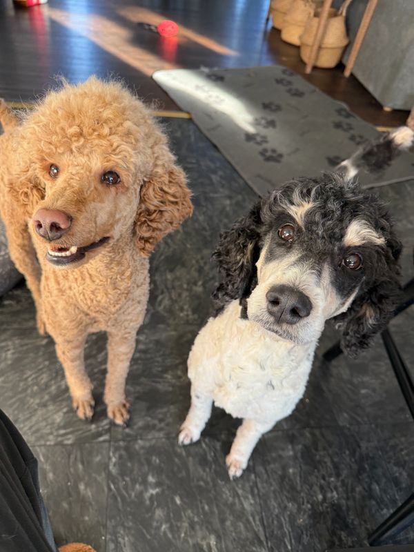 Happy healthy ,these two are amazing poodles with wonderful dispositions